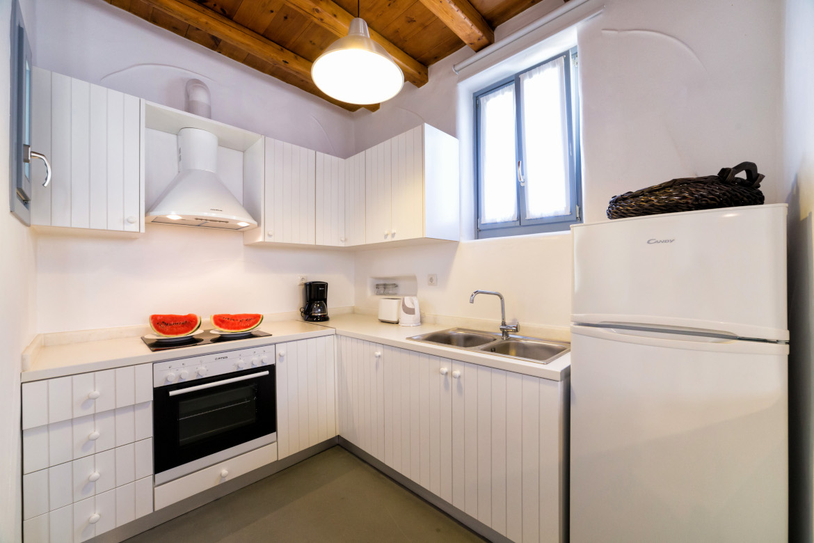 • Εξοπλισμένη κουζίνα με φούρνο, εστίες, ψυγείο-καταψύκτη, καφετιέρα Nespresso, καφετιέρα φίλτρου, φρυγανιέρα, ηλεκτρικό βραστήρα και πλήρες set κουζινικών