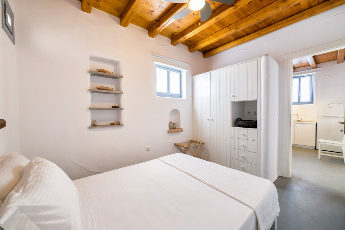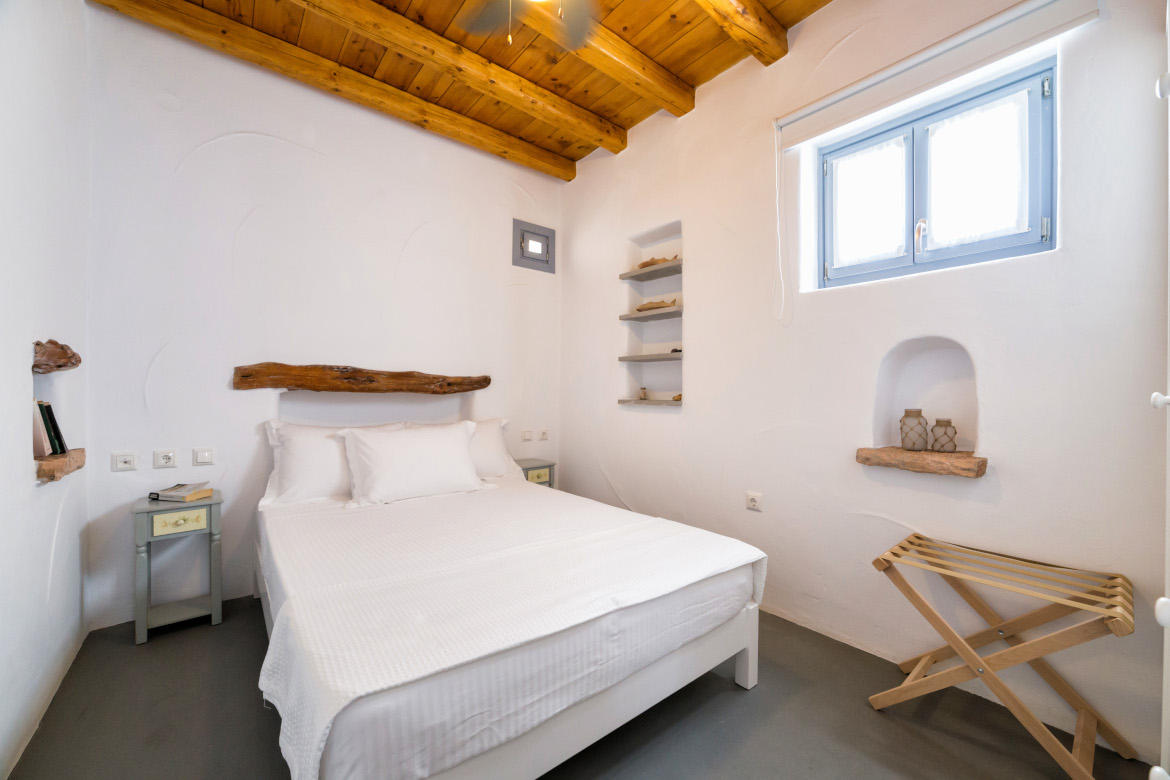 • Υπνοδωμάτιο με διπλό κρεβάτι (1.40m x 2.00m), παράθυρο και ανεμιστήρα οροφής