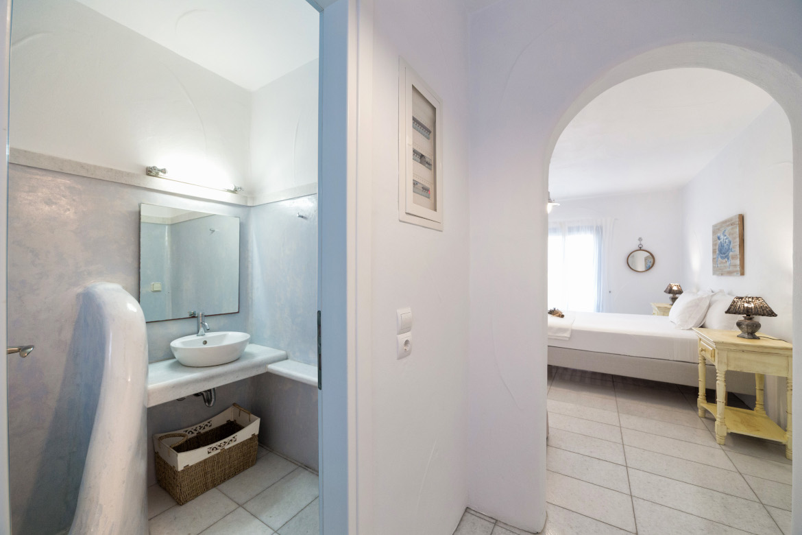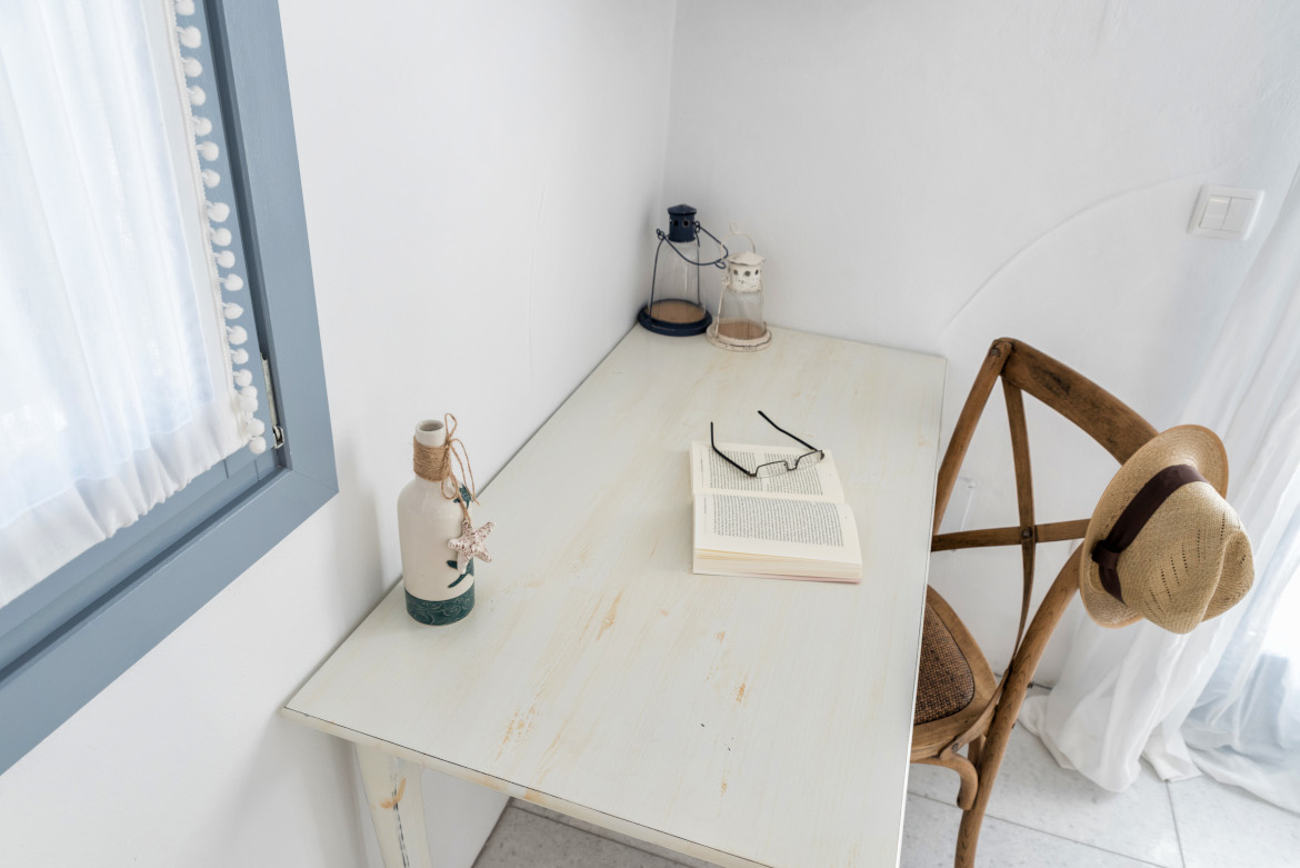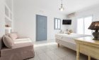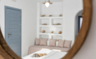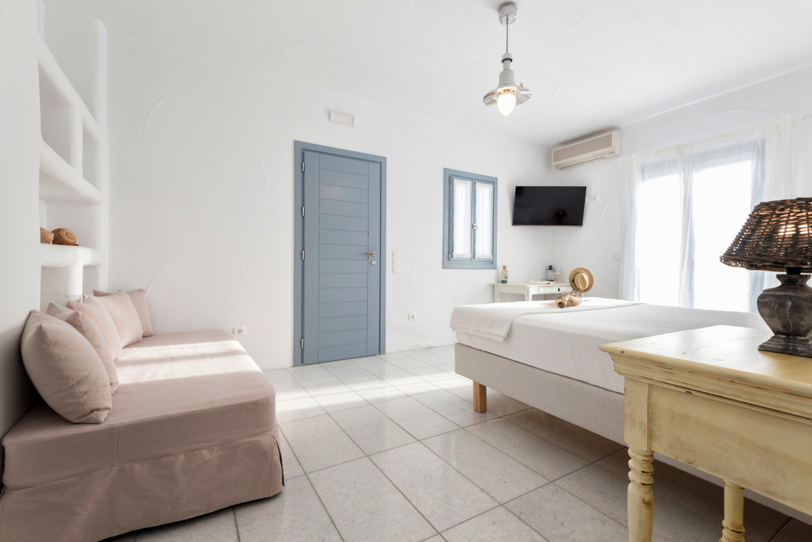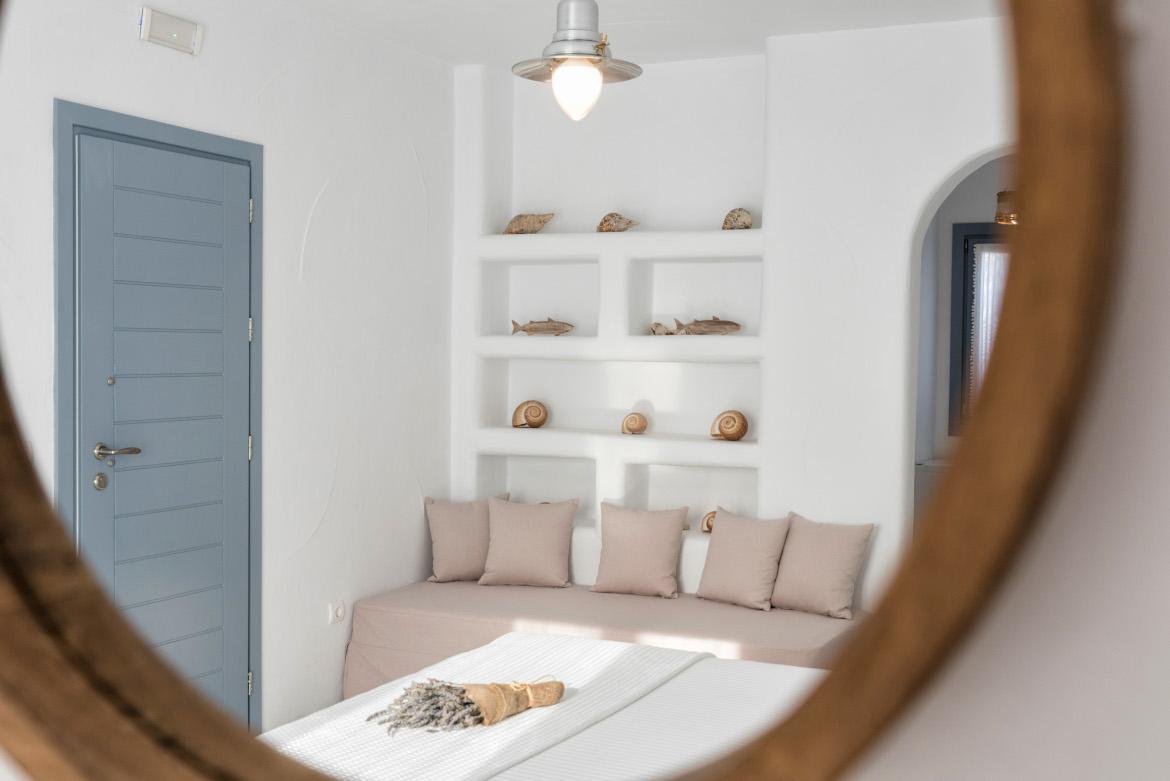 Από τα χρώματα του Aegean Colors, δεν θα μπορούσε να λείψει το θαλασσί του Αιγαίου, το οποίο μπορεί να απολαύσει κανείς από το μπαλκόνι του δωματίου.