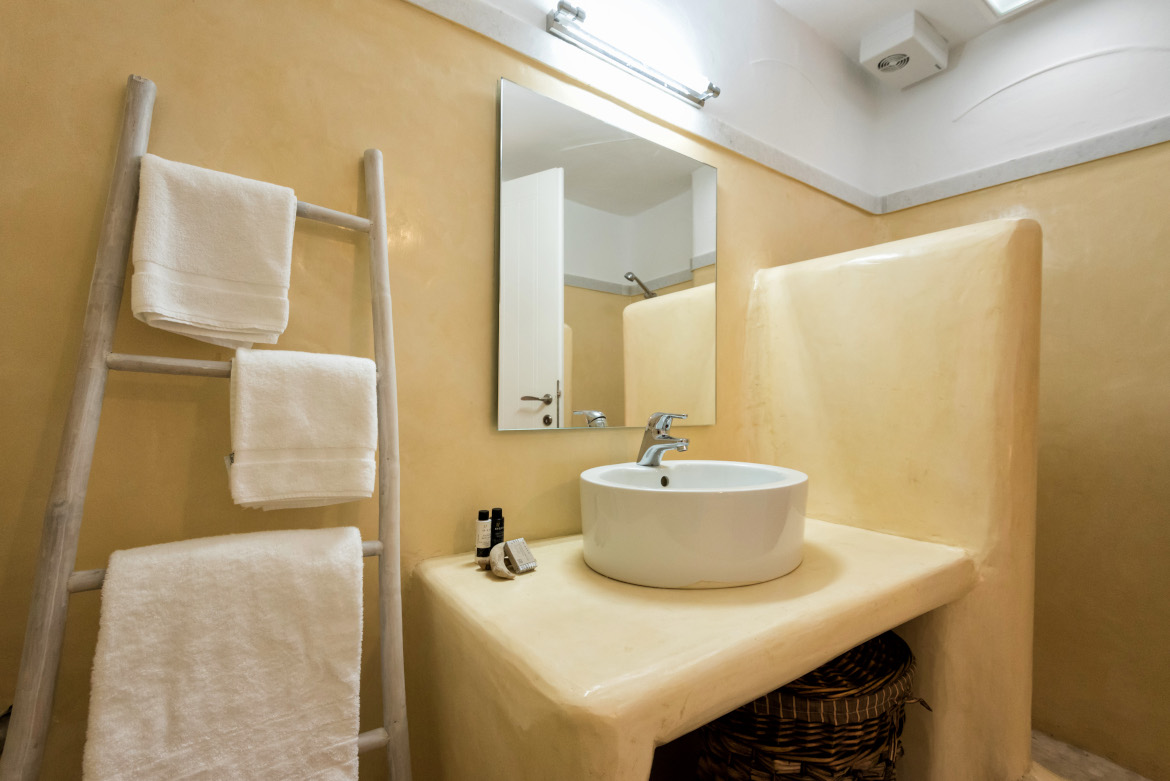 - Μπάνιο εντός του υπνοδωματίου με κτιστή ντουζιέρα