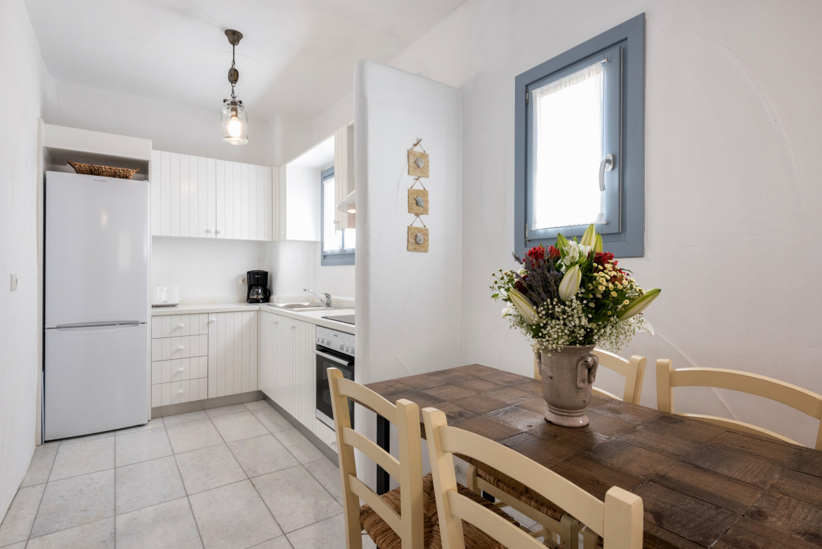 - Κουζίνα εξοπλισμένη με φούρνο, εστίες, ψυγείο-καταψύκτη, μηχανή Nespresso, καφετιέρα φίλτρου, φρυγανιέρα, ηλεκτρικό βραστήρα και πλήρες set κουζινικών